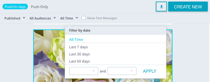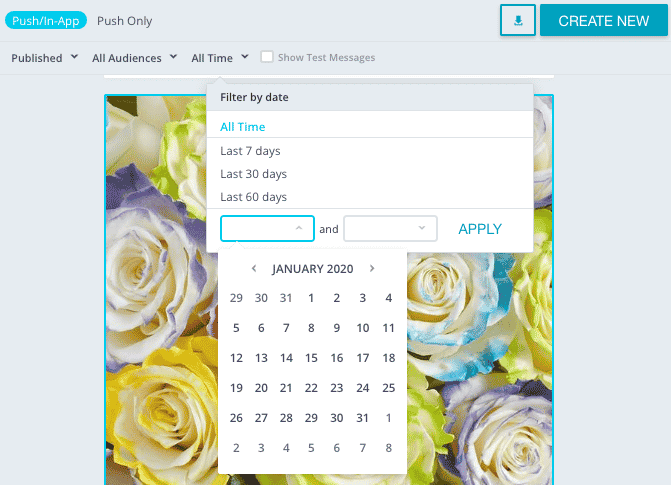Download the message analytics for a specific date range in a few steps. To get your CSV file, select All Time to open Filter by Date.
