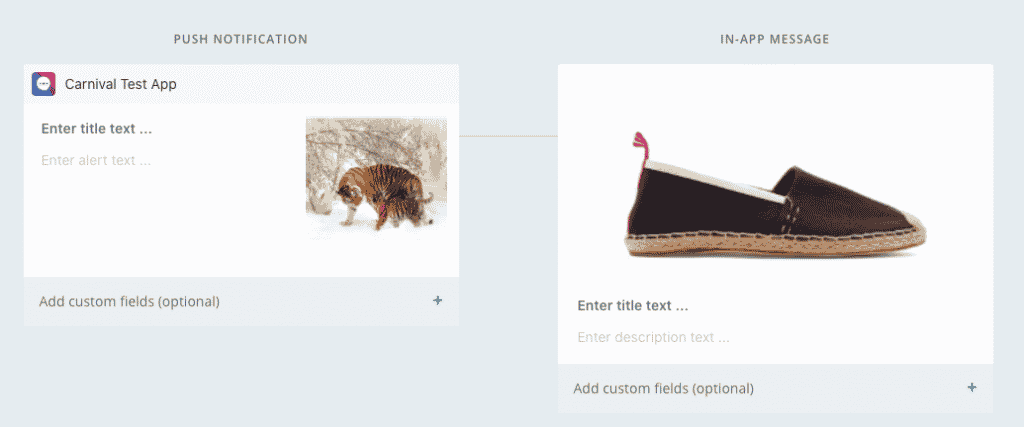- Send a push notification which contains a different image/gif/video to the one included in a linked in-app message.