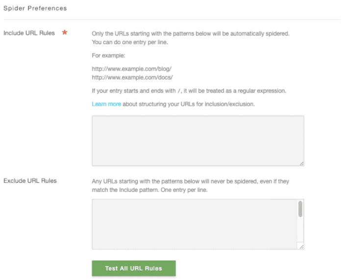 There are four [0-9] for the year and two for the month. Note, we've left off the DAY's [0-9] because we know anything with the subdirectory /page/ should be excluded, thus making the DAY excessively specific. We're almost done, but first, we need to apply a little more detail so the spider fully understands its instructions. The next and final steps require a small bit of programming knowledge that we'll explain below.