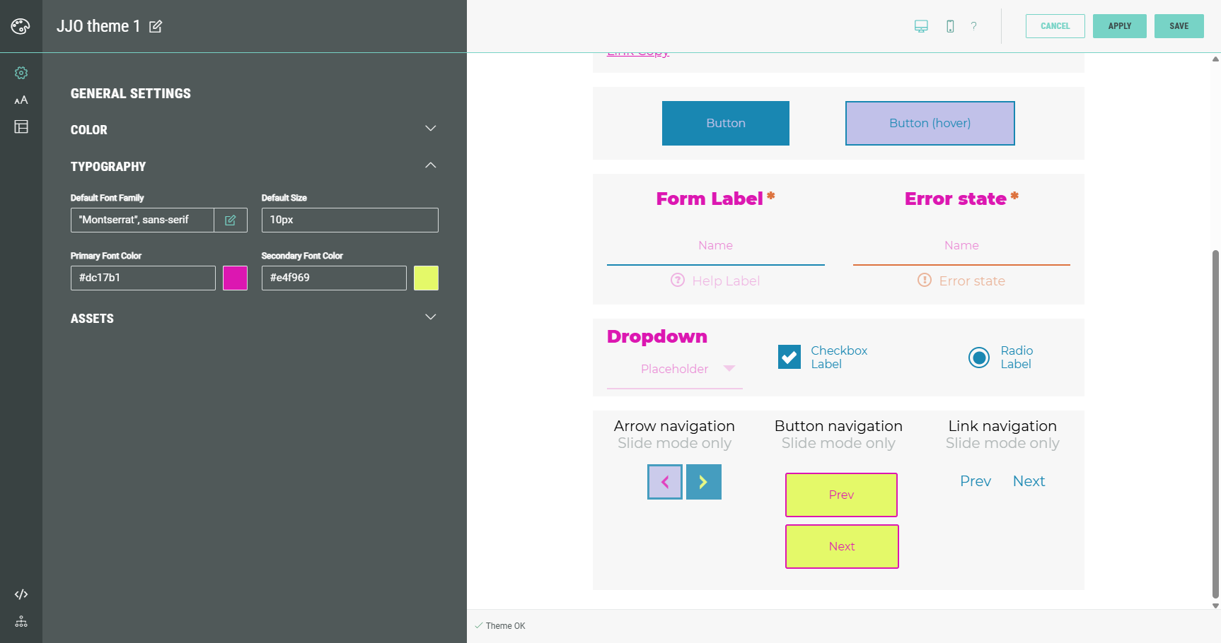 In the General Settings, the following sections can be seen: Color, Typography and Assets.