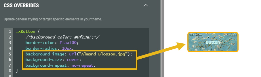 The CSS Overrides section allows you to update general styling or target specific elements in your theme, by manually writing CSS syntax in the field.