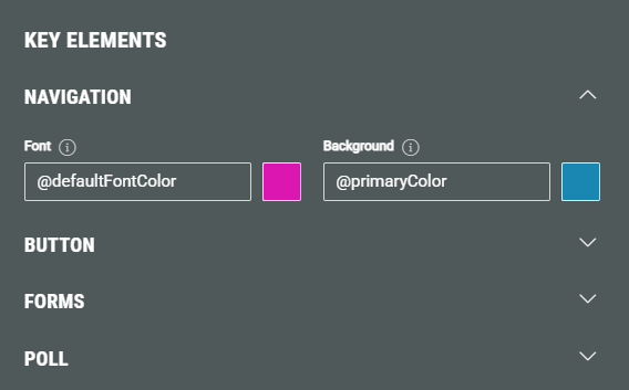 In Key Elements, the following sections are available: Navigation, Button, Forms and Poll.