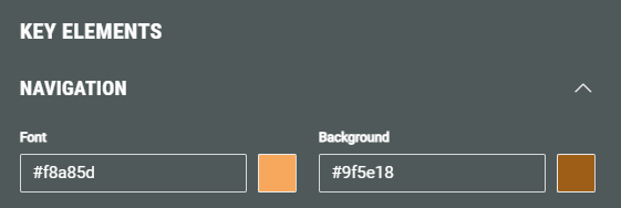Both colors are by default inherited from the main theme's settings. You can customize them through the visual color picker or by entering a manual value in one of the following formats: #hex, rgb(), rgba(), browser constant, @variable, (formula).(note 1)