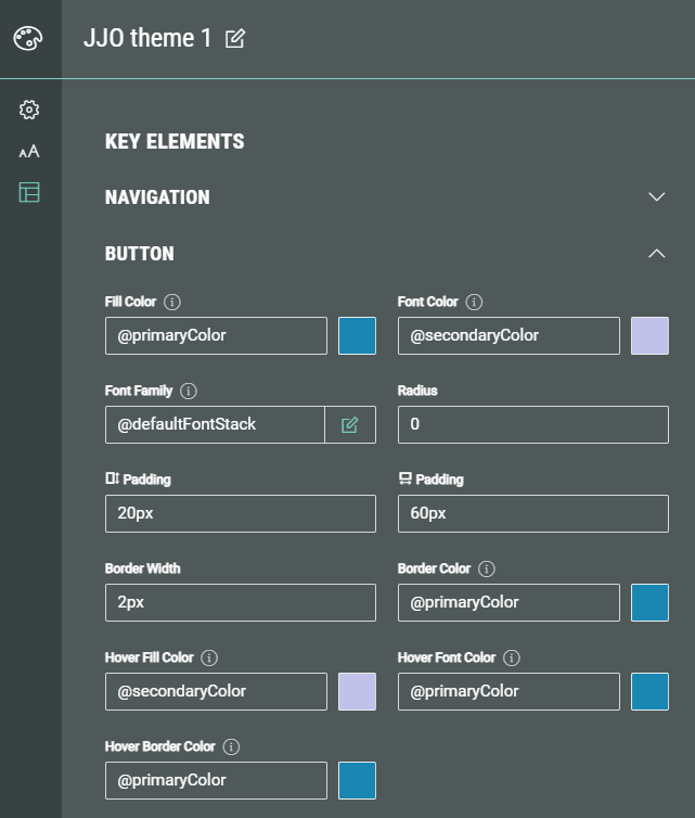 When you're editing a theme in the Theme Designer, you can see these left navigation items: