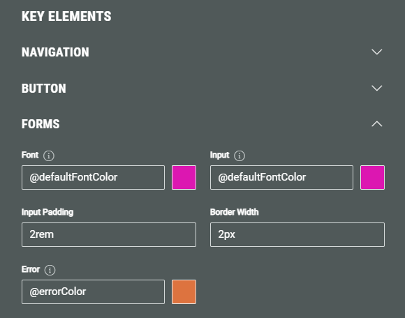 - Variables= "This value is inherited from your theme’s main settings. You can update the original variable or override it here."