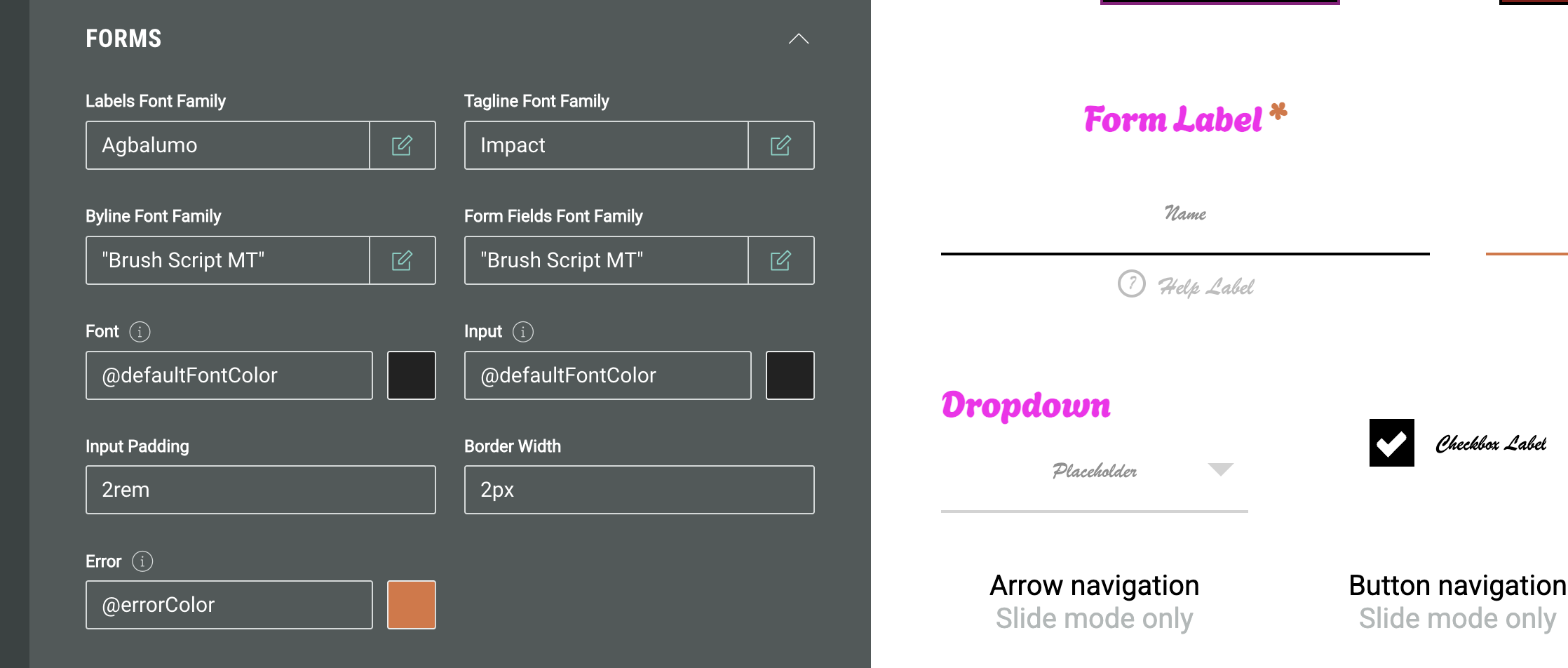 2. Tagline Font Family - this value will impact the form field tagline, only