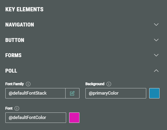 In the Poll section, you can define the following styling options, that are by default inherited from the theme's main settings :