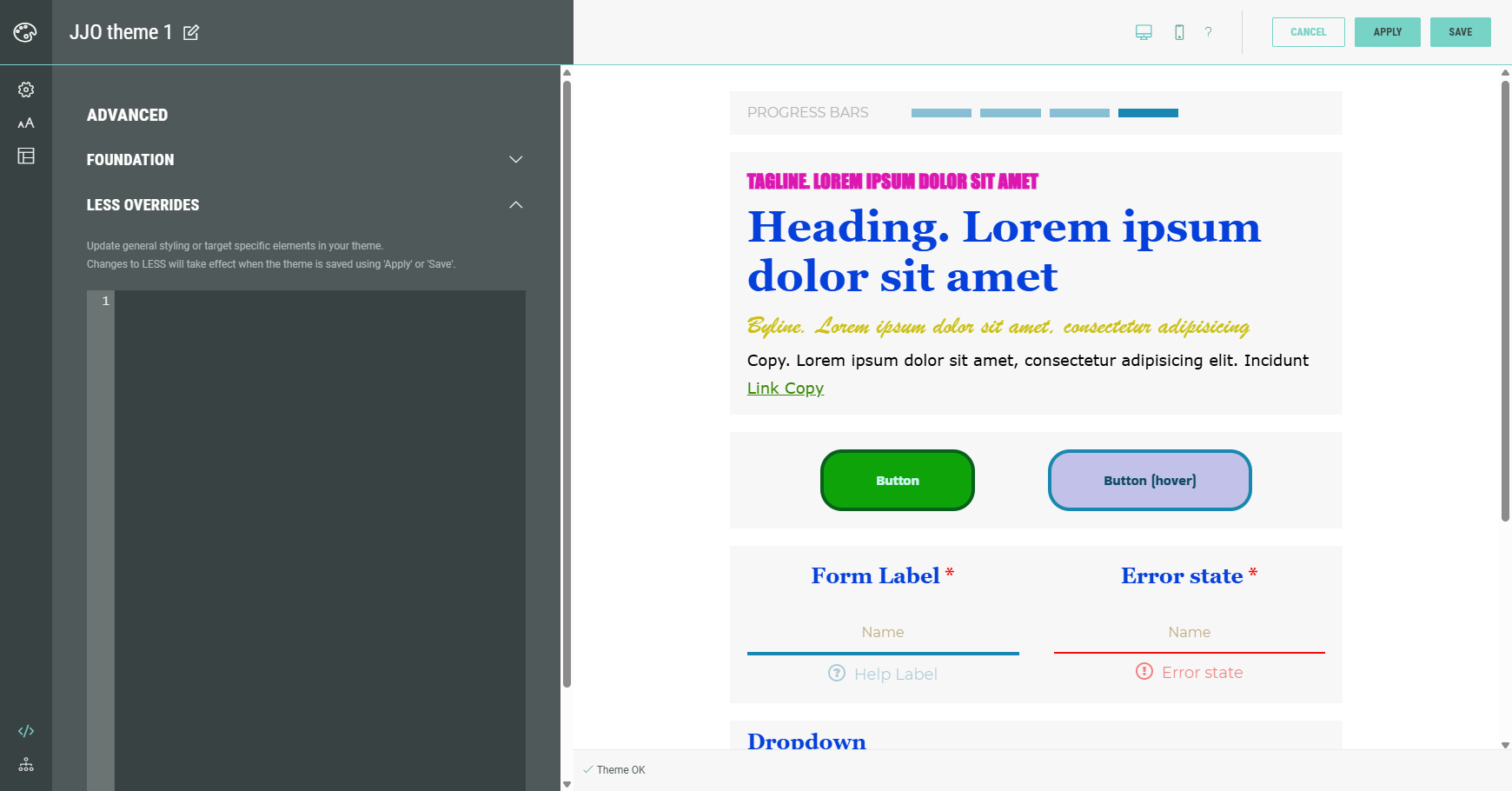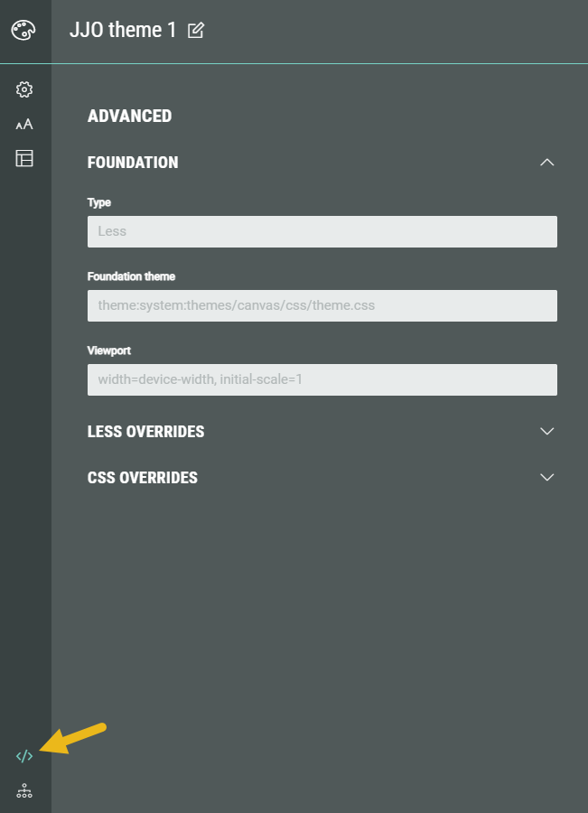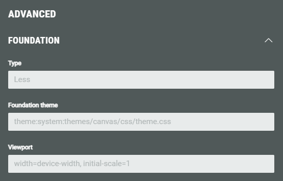 In Advanced, the following sections are available: Foundation, LESS Overrides and CSS Overrides.