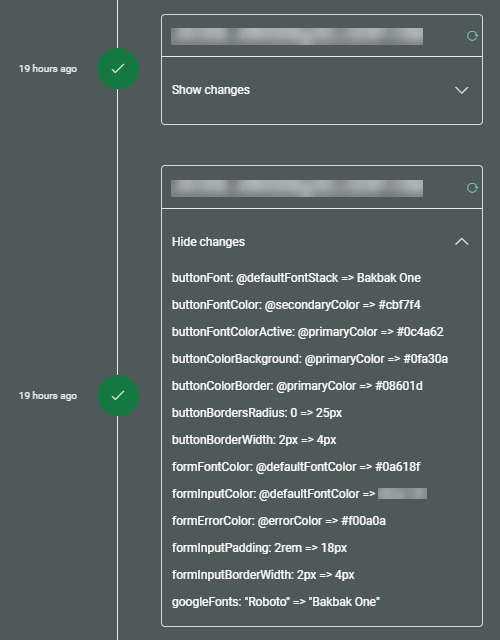 • The actual changes that were done — You can show/hide changes by clicking the arrow on the right.