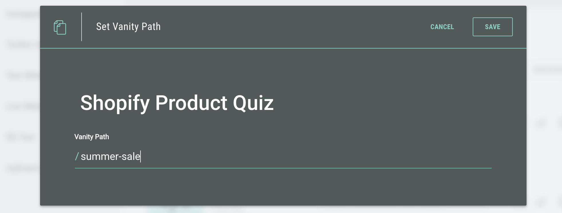 In the new pop-up, define the vanity path in the text field available and click Save.