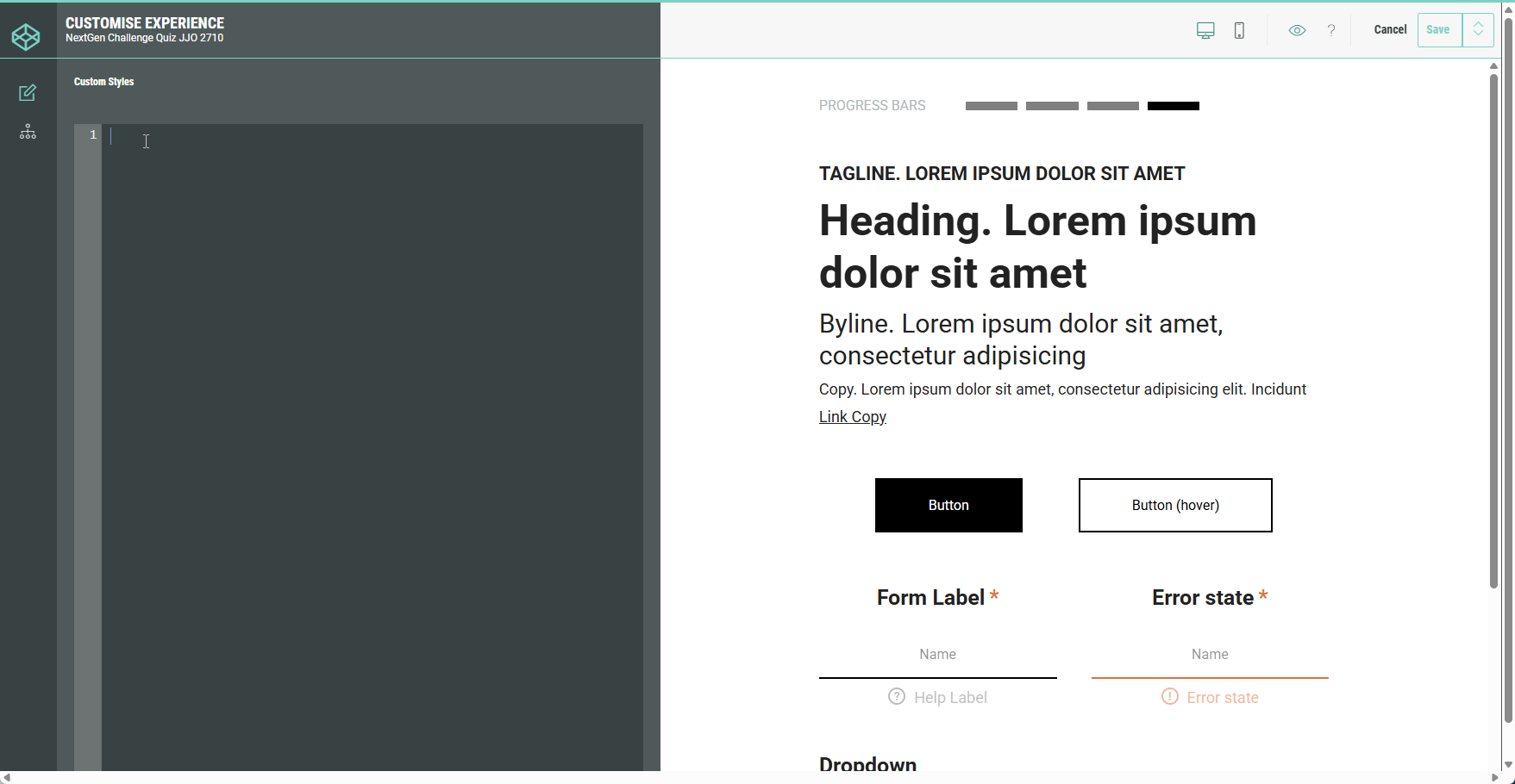 The Customize section is meant to be used by developers and designers that need advanced customization options for the Experience.