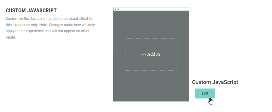 Add custom JavaScript to this Experience, which will be output inline in the page rendering the Experience.