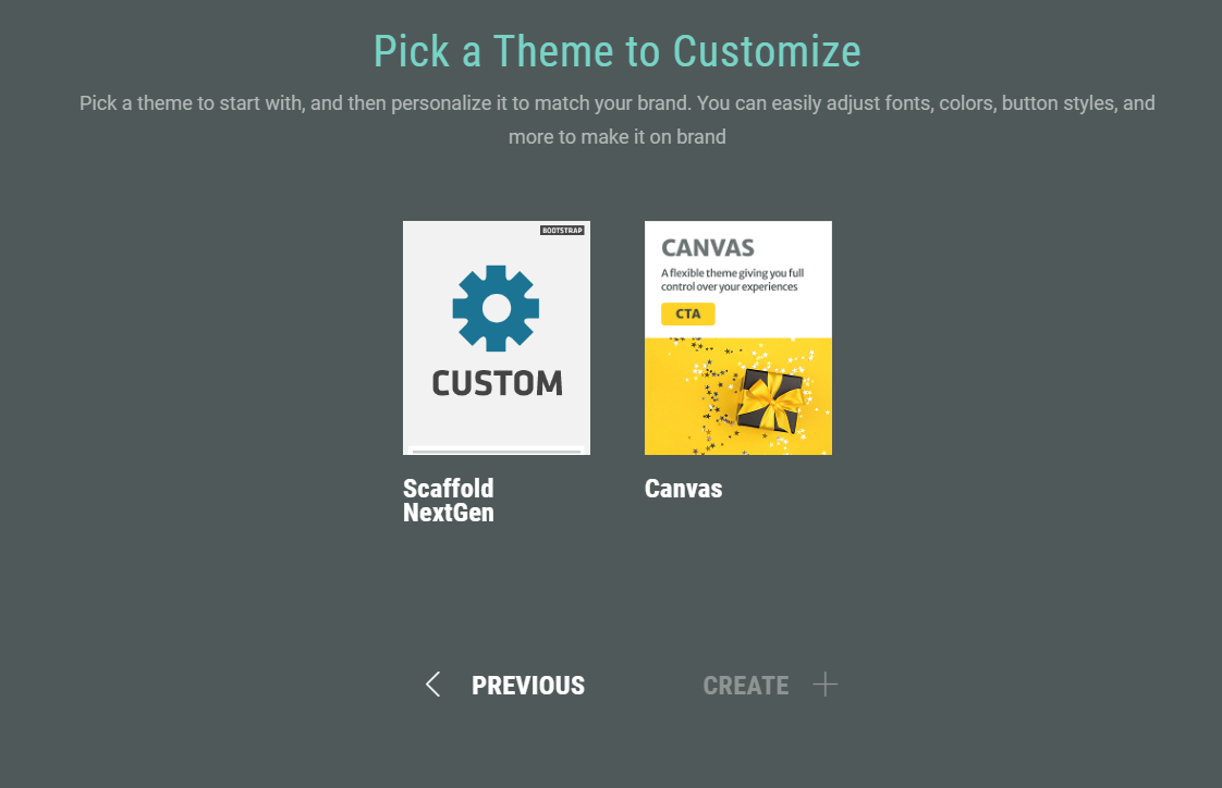 A theme can be selected when creating a new Experience, on the Apply a Theme step.