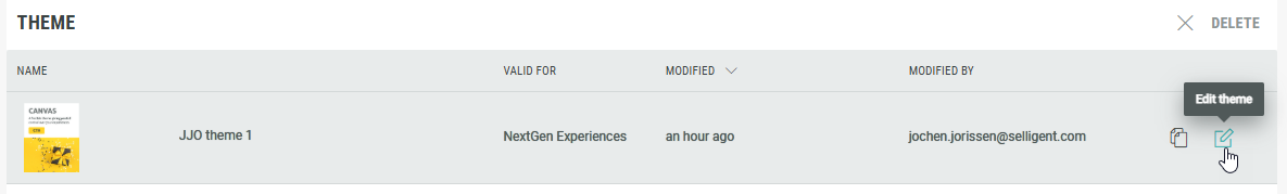 - Globally — By clicking on the Edit icon at the right in the themes overview.