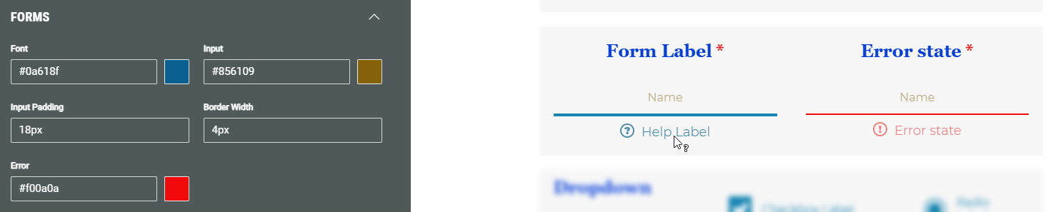 In the Forms section, you can define the following styling options: