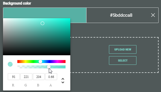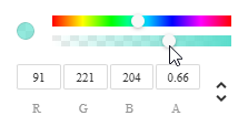 - The HEX or RGBA value is also shown in the field on the right of the color, which you can manually edit by typing.