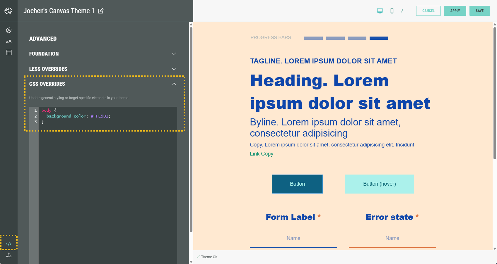 This CSS applies to an Experience when the Theme is selected during Experience creation (or added/changed afterward).