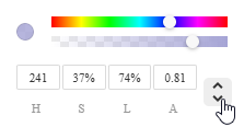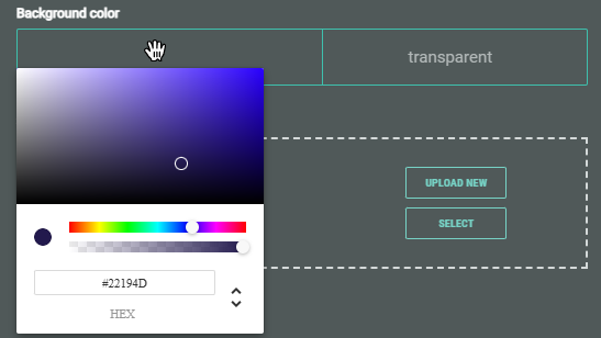 - The HEX or RGBA value is also shown in the field on the right of the color, which you can manually edit by typing.