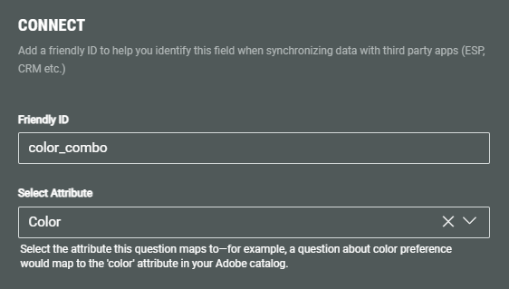 • Make sure that you set a clear Friendly ID in the Connect section, to identify the field when synchronizing data with third party apps (ESP, CRM, etc.)