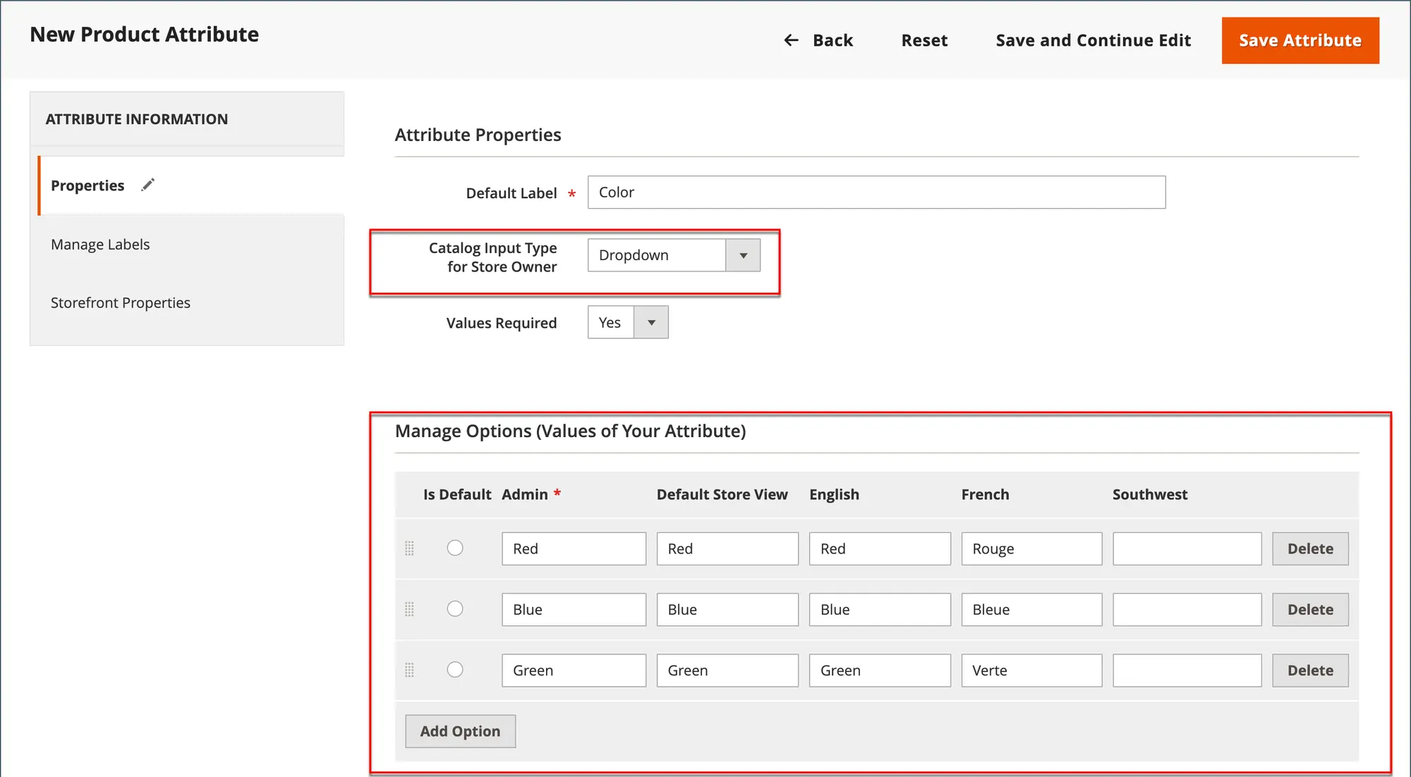 Important: Some Adobe Commerce attributes contain a list of options.