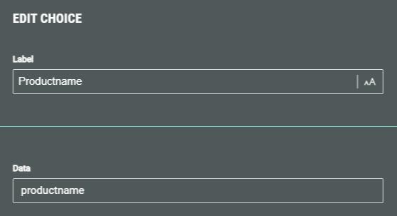 • For each answer option in the Quiz Single Choice and Quiz Multiple Choice modules, set the label and data value (when creating or editing an answer). The data value is used to match the Grow option with the Adobe Commerce attribute value.