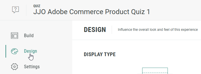 The Design tab can be found directly below the Build tab. Here, you can customize your Experience with the Display Type (Page- or Slide-based), change or edit the Theme, and add a footer and background in the Page Structure and Design section.
