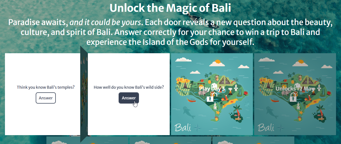Create excitement and engagement with an Advent Calendar campaign that unlocks content day by day. This versatile format can be used for timed promotions, daily streak challenges, countdown events, or traditional advent calendars—all designed to keep your audience coming back for more.