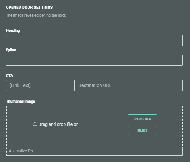 Also, select the thumbnail image to be shown when the promotion door is opened (and set an alt text).