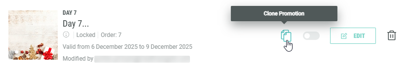 Instead of creating new promotions from scratch each time, you can clone a promotion, which duplicates that entire promotion configuration.