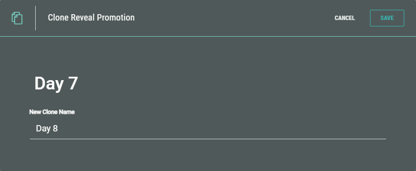 This shows a pop-up in which you can enter a name for the cloned promotion.