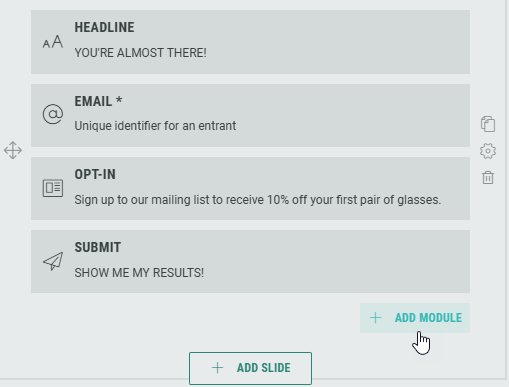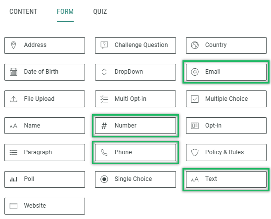 - Add one or multiple of the following modules: Email, Number, Phone, Text.