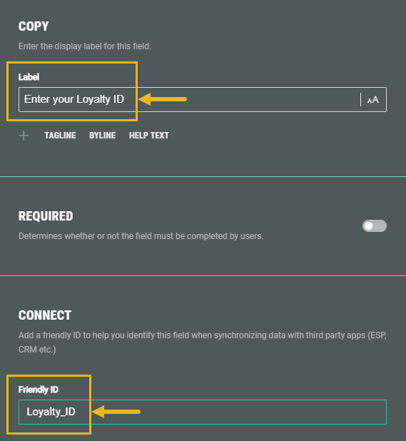 Also, enter a clear Label, such as: Enter your Loyalty ID.