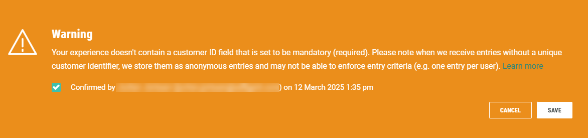 Note: If you didn't set the customer ID to be a required field, entries without this customer id are stored anonymously and entry criteria such as one entry per user can't be applied to those.