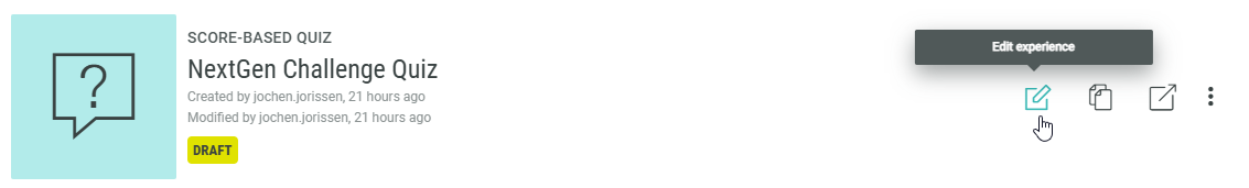 - Find your Experience under the Experiences tab and edit the Experience by clicking on the edit icon on the right hand side.