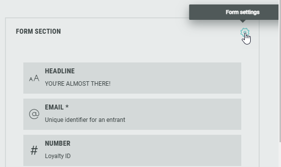 - Click on the gear icon in the Form Section to show the form settings.