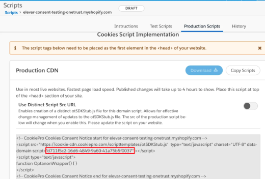 5. Your Data Domain ScriptSRC URL will be located in the Production CDN Script.
