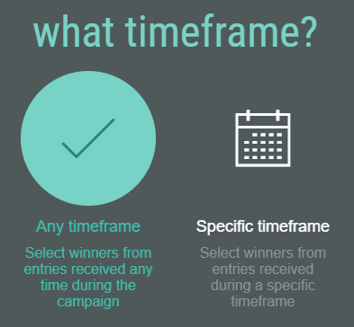 - Random will allow you to select a winner at random in a specific timeframe and based on pre-defined conditions such as a minimum number of votes, quiz score, judges rating, source(1) and you can also choose to pick winner only from the pool of entrants that have answered your challenge question correctly.