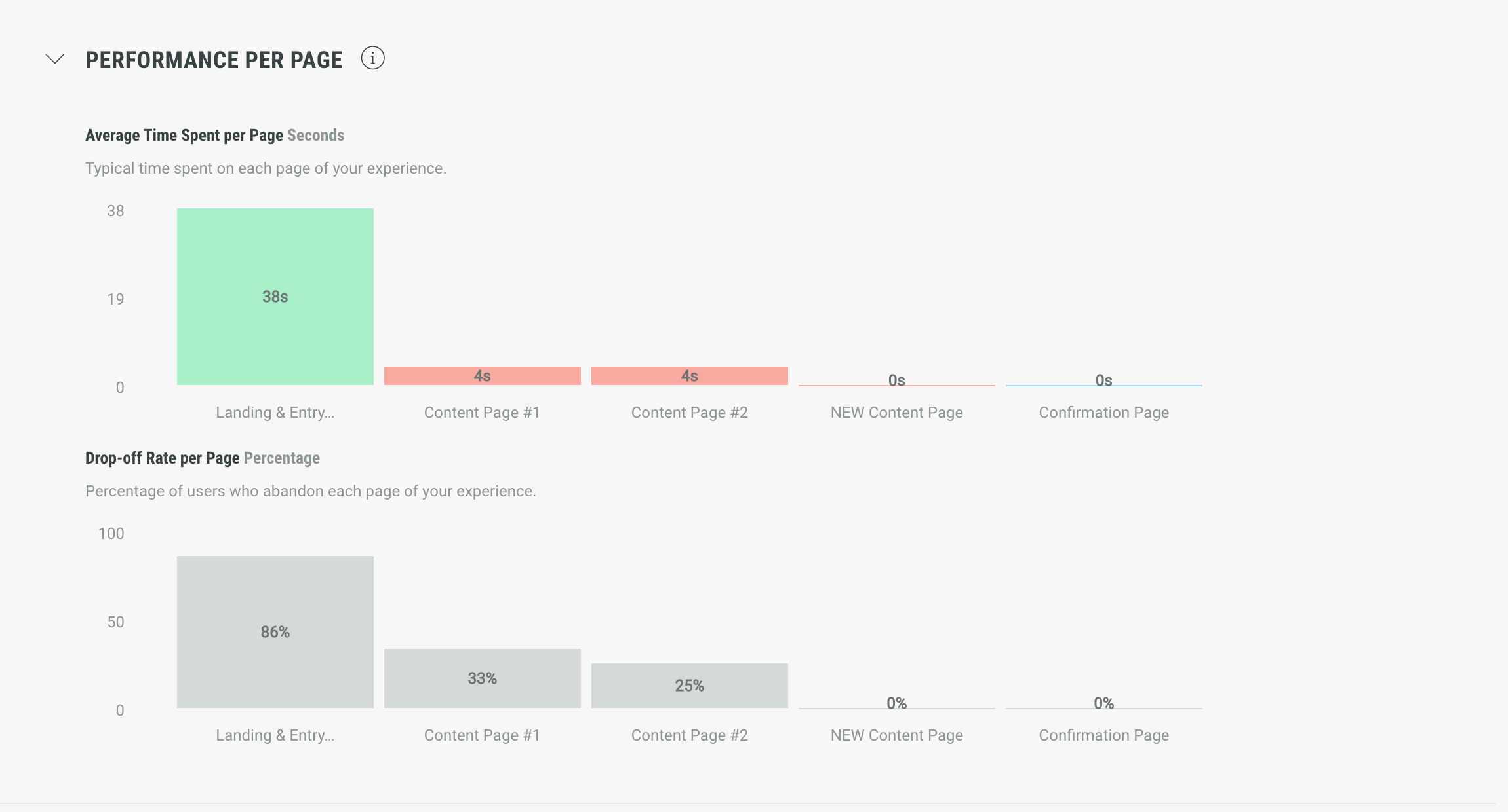 Note: The drop-off rate of the Confirmation Page is always 100% when at least 1 participant completed the Experience, or 0% when no one has completed the Experience yet.