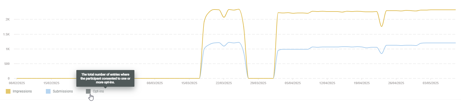 • Opt-ins — The total number of entries where the entrant consented to one or more opt-ins.