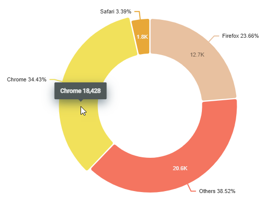 Hovering with the mouse cursor over a piece of the pie chart shows a tooltip with the browser and exact KPI value.