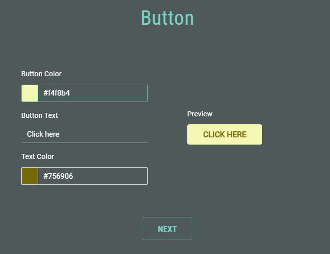 After choosing Button as lightbox launch method, select the button color, enter the button text (limited to 20 characters, spaces included) and select the text color. Colors can be selected through a visual color picker or by entering a hexadecimal color code.