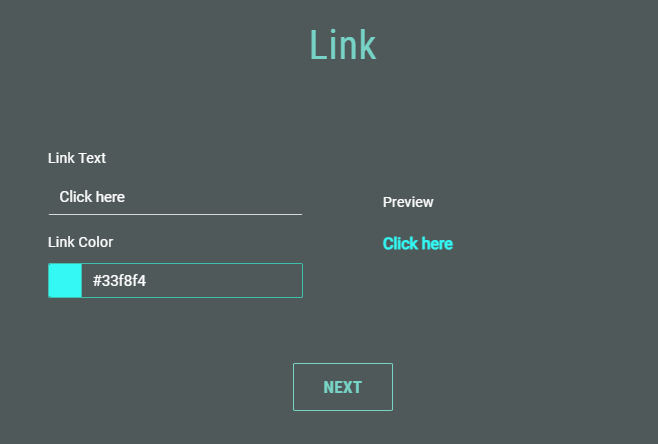 After choosing Link as lightbox launch method, enter the link text (limited to 20 characters, spaces included) and select the link color (through the visual color picker or by entering a hexadecimal color code).