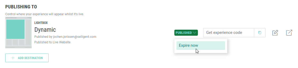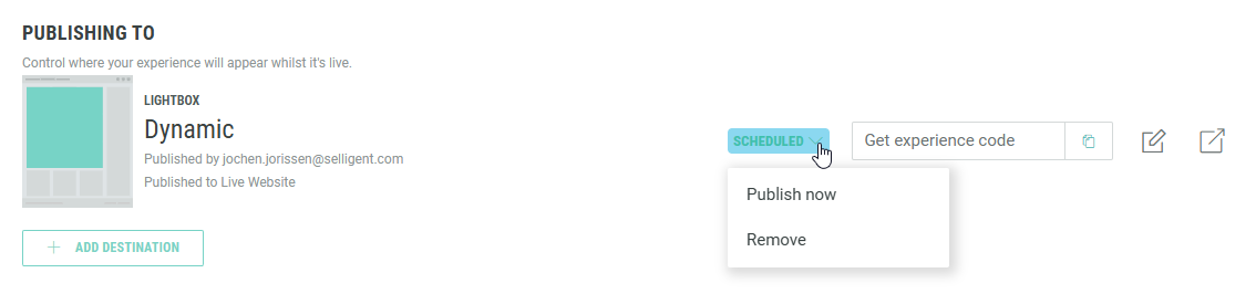 LightboxExperiences that are either published or scheduled, both display the following options in the publishing destinations section at the bottom: