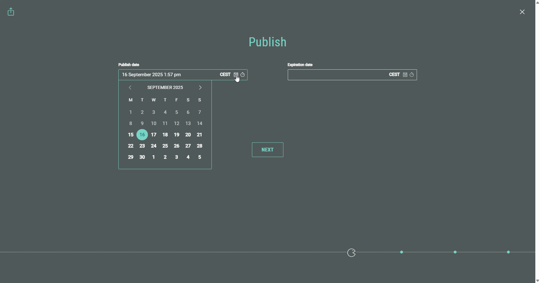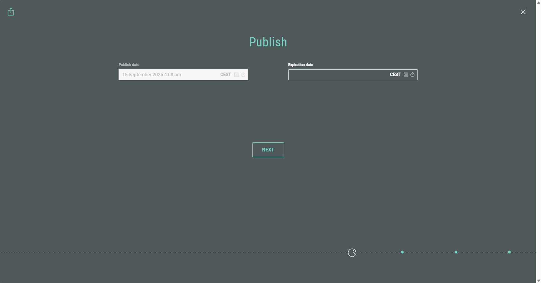 - Publish date — You can choose the date and time on which the Experience becomes available for participants.