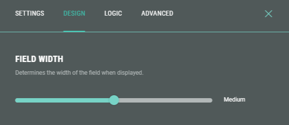1. On the Design tab, you can define the field width by dragging the slider to the left or right (check the preview window on the right to verify the desired field size).