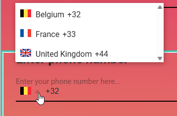 With the selection of countries, Experience participants will see the proper country flags, country names and country codes when filling out the phone number.