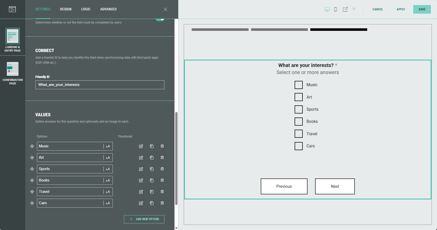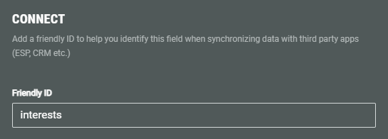 Add a Friendly ID to help you identify this field when synchronizing data with third party apps (ESP, CRM etc.)