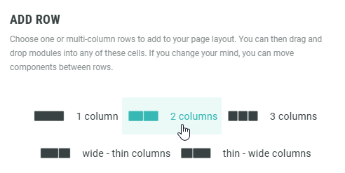When building a page-based Experience, you can customize the layout of the pages by adding and editing Rows and/or Modules.
