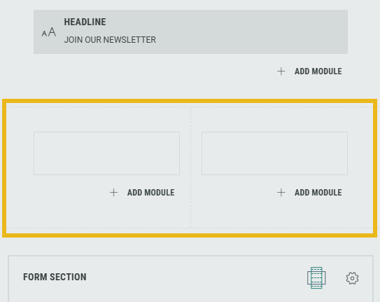 You can now see the added row, containing two columns, in between the Headline and the Form section.