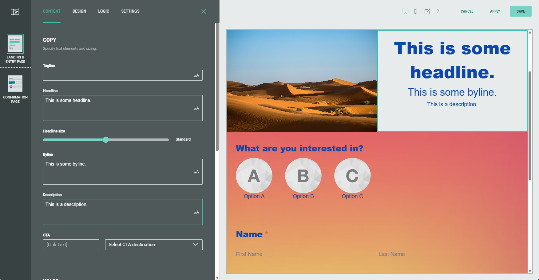 1. Click on the Edit button at the right of a page, such as the Landing & Entry Page.